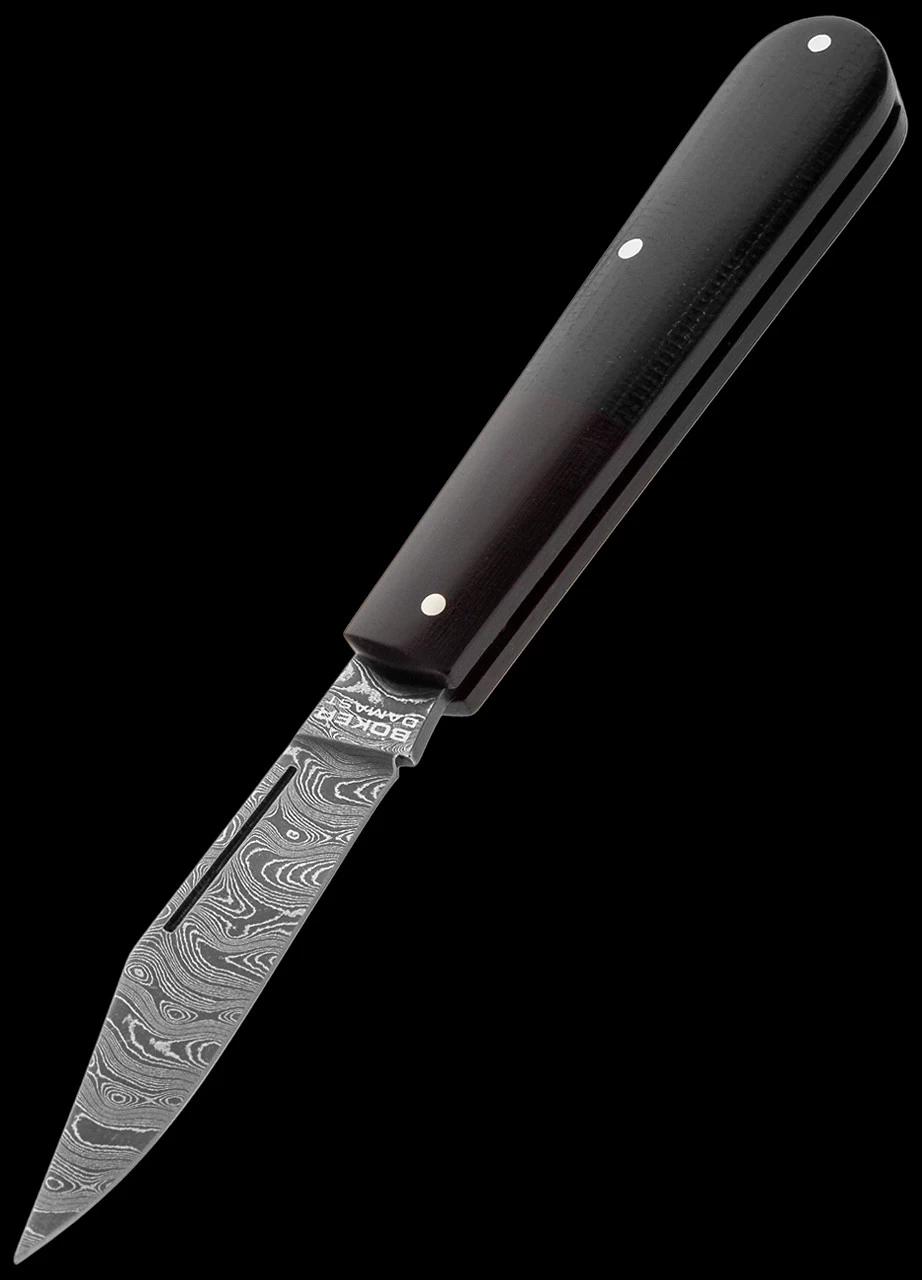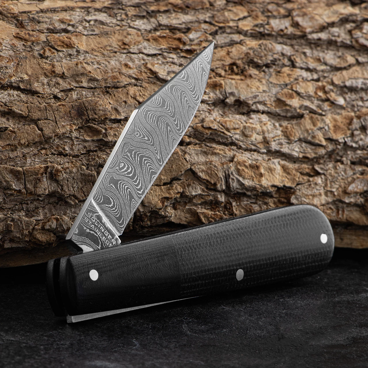 In this special version, the classic Barlow has a noble blade made of 200-layer damask in the Riple pattern and a traditional-looking handle scale made of chestnut brown and black Micarta. With its characteristic, extra-long jaw and wider blade, the slipjoint knife is on the one hand a small, pocket-friendly companion, but on the other hand it is also large enough to easily handle most everyday cutting tasks. It is delivered in a high-quality felt case for storage. It is handcrafted in the Böker factory in Solingen.