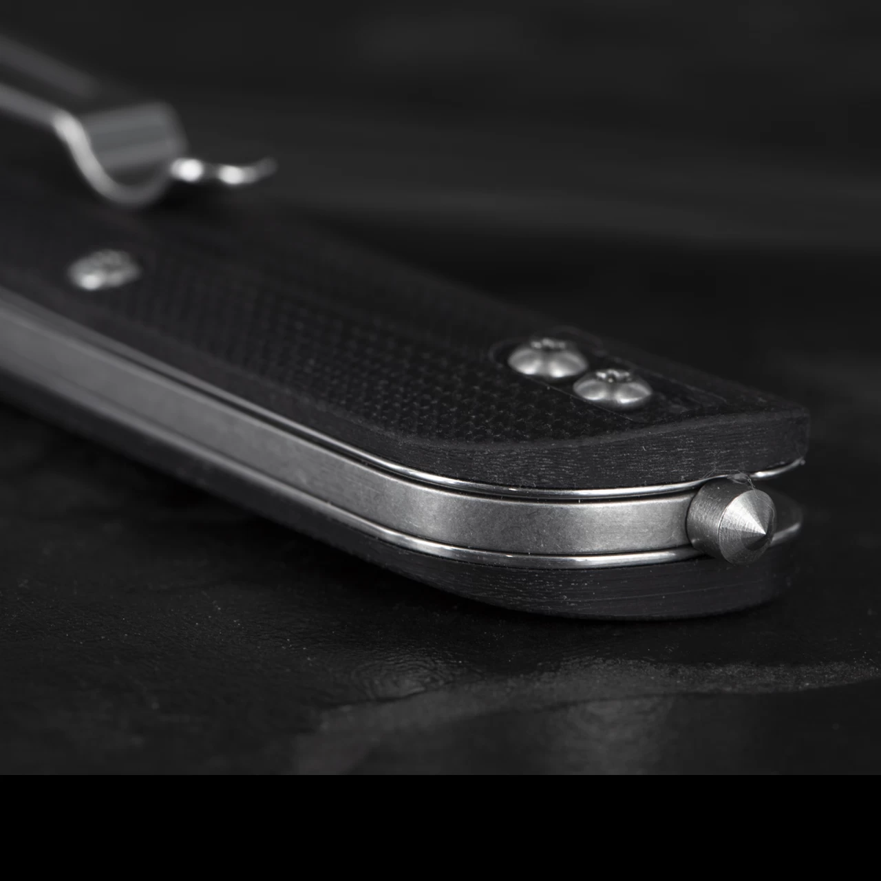 The modernized construction of the Boker Plus Tech Tool City 1 is based on solid steel liners and embedded in two contoured handle scales, made out of black G10. The Swedish Sandvik 12C27 steel, with a Rockwell hardness of 58-60 HRC, provides outstanding edge retention of the hollow ground blade. The high quality manufacturing, with a smooth blade action and optimized operability, are proof of the premium quality of Boker Plus Tech Tools. The hollow ground stainless steel blade is accompanied by these tools: Glass breaker, clip.