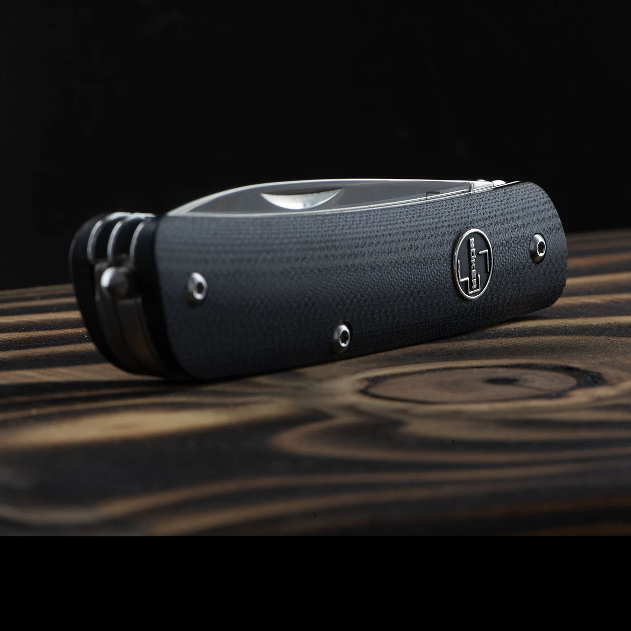 The Boker Plus Tech Tool Fork is a pocket-knife with a main blade made of Sandvik 12C27, which opens classically by nail nick and does not lock. The heart of this model is the fold-out fork, which makes the Tech Tool the ideal companion for camping and picnic trips. From peeling apples to culinary delights from a can – the Tech Tool Fork makes the difference without making any odds. The pleasantly contoured handle made of black G10 is balanced in the hand and can be cleaned quickly. Supplied with a convertible deep-carry clip.