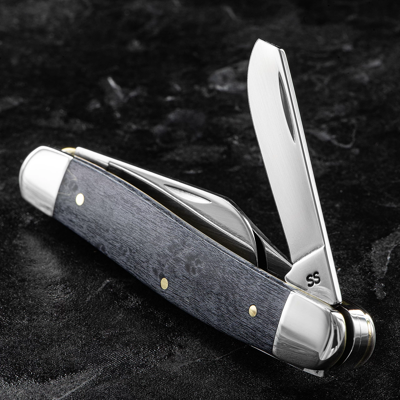 The Case Stockman Birdseye Maple model has a clip, pen and sheepsfoot blade made from stainless steel. The handle is a smooth and great looking “Birdseye Maple” wood with nickel silver bolsters. Each blade is under three inches long and non-locking making it legal to carry within the UK at the owners’ discretion
