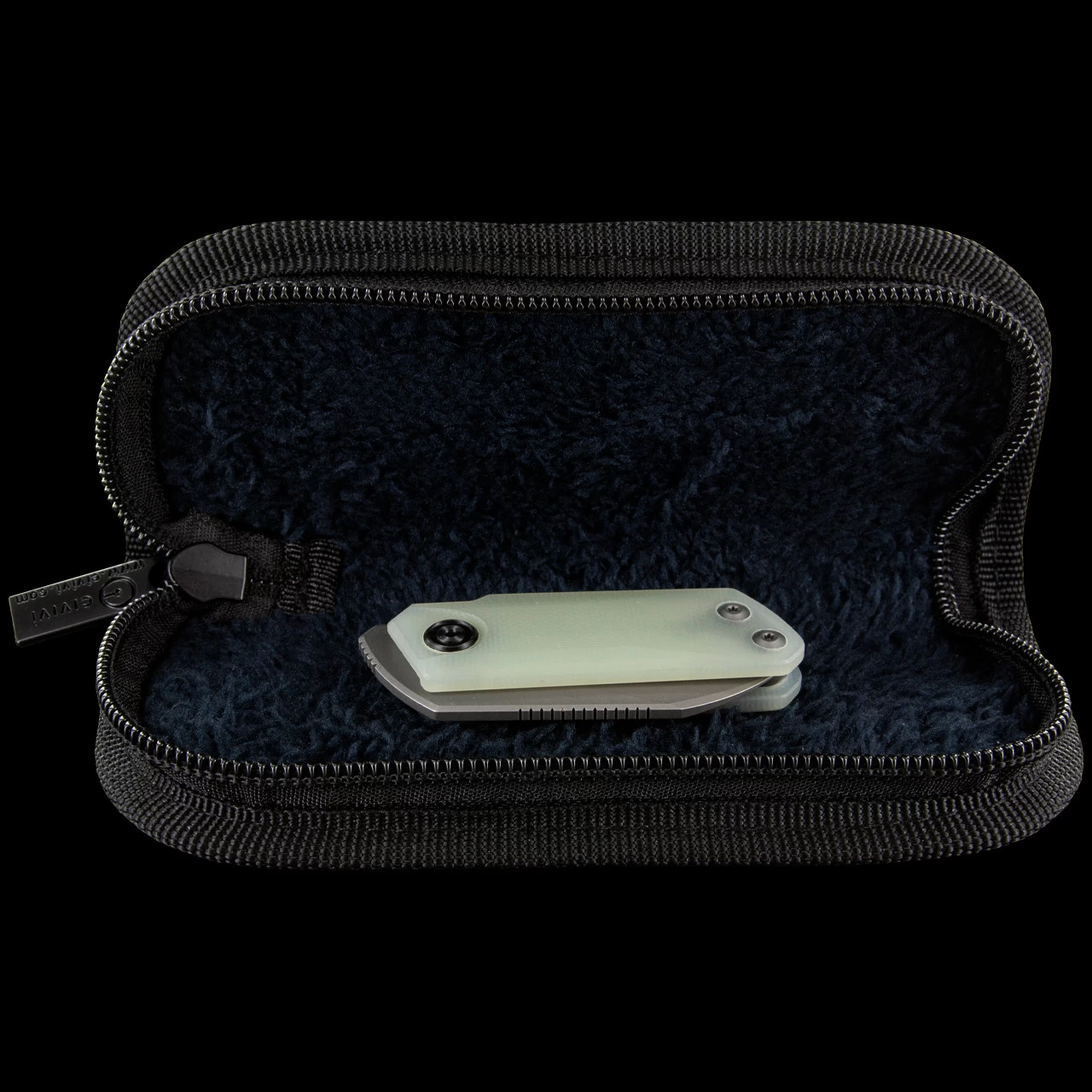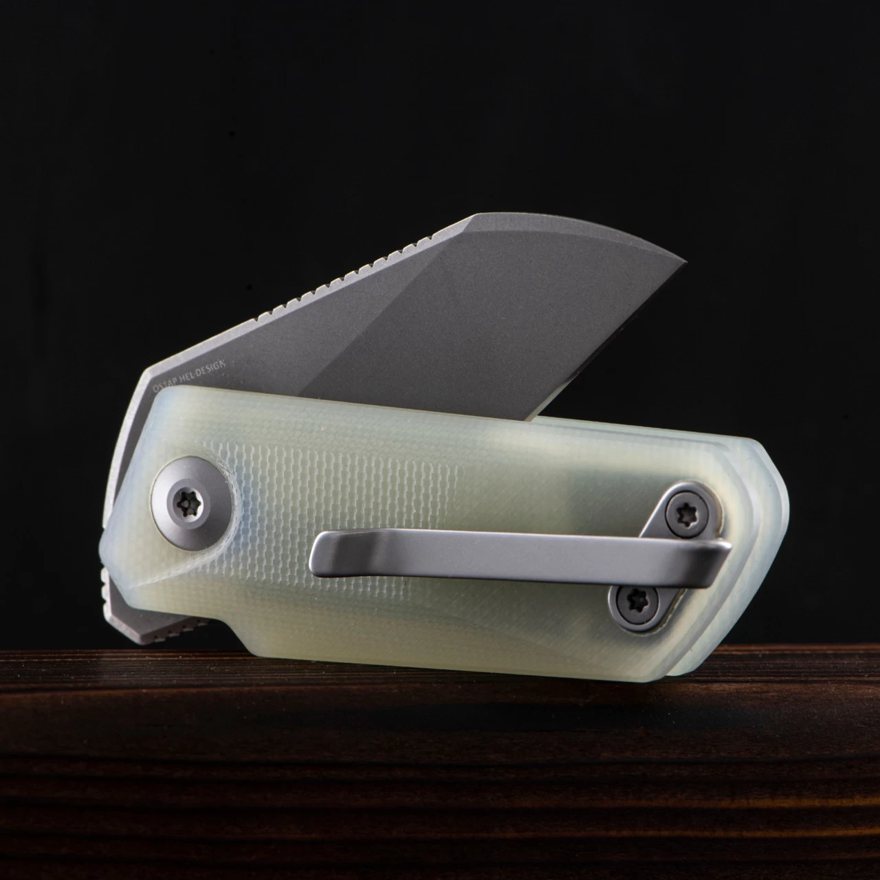 The handle in this version is G10 with a choice of either natural or white colour. A pocket clip is attached.Â