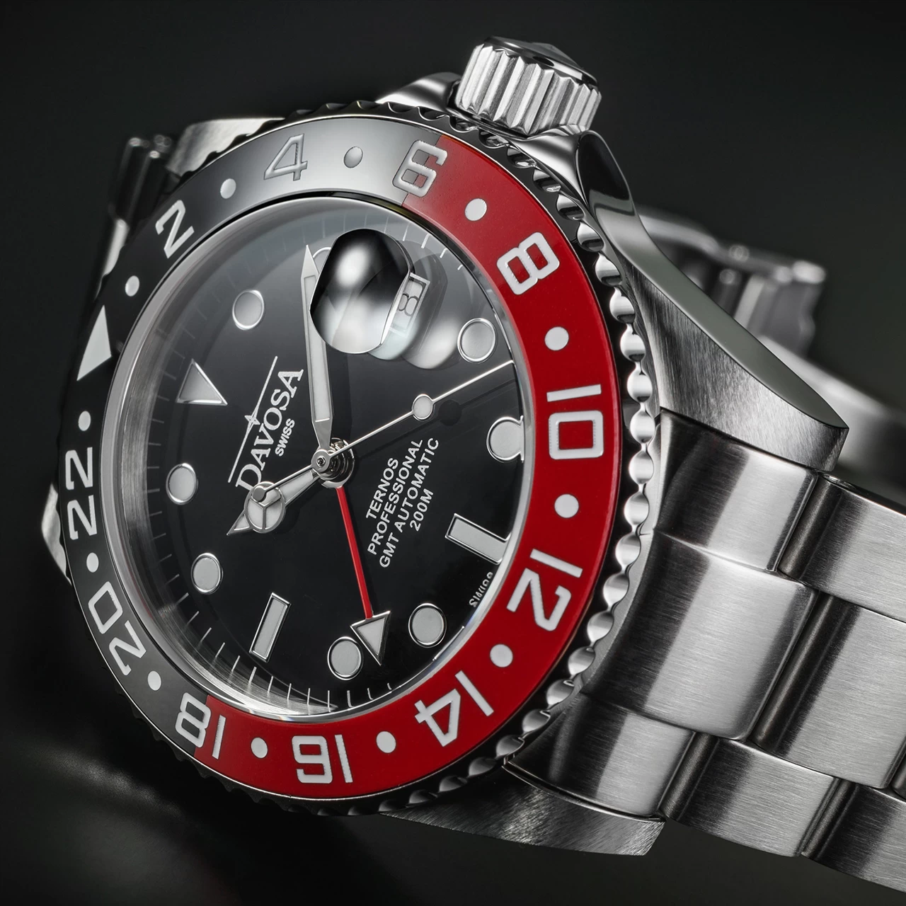 The ability to display a second time zone in addition to your current time, also known as a GMT function, has become one of the most popular additional functions of mechanical wristwatches in recent years. It was therefore a logical move for us to equip its successful Davosa Ternos Professional series with this sought-after function.