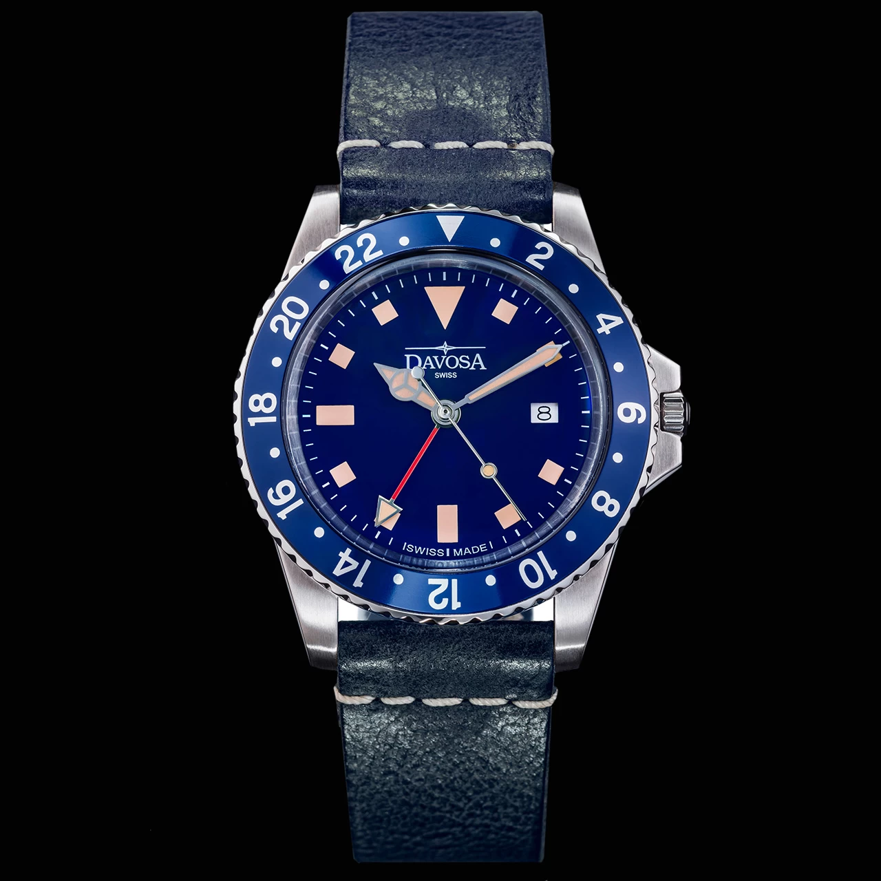 The Davosa Vintage Diver Quartz is a stylish everyday watch for all retro style lovers and, with its diameter of 39mm, perfect for every wrist. The Swiss quality movement Ronda 505/24h also allows the display of a second time zone which is highlighted by a red hand.