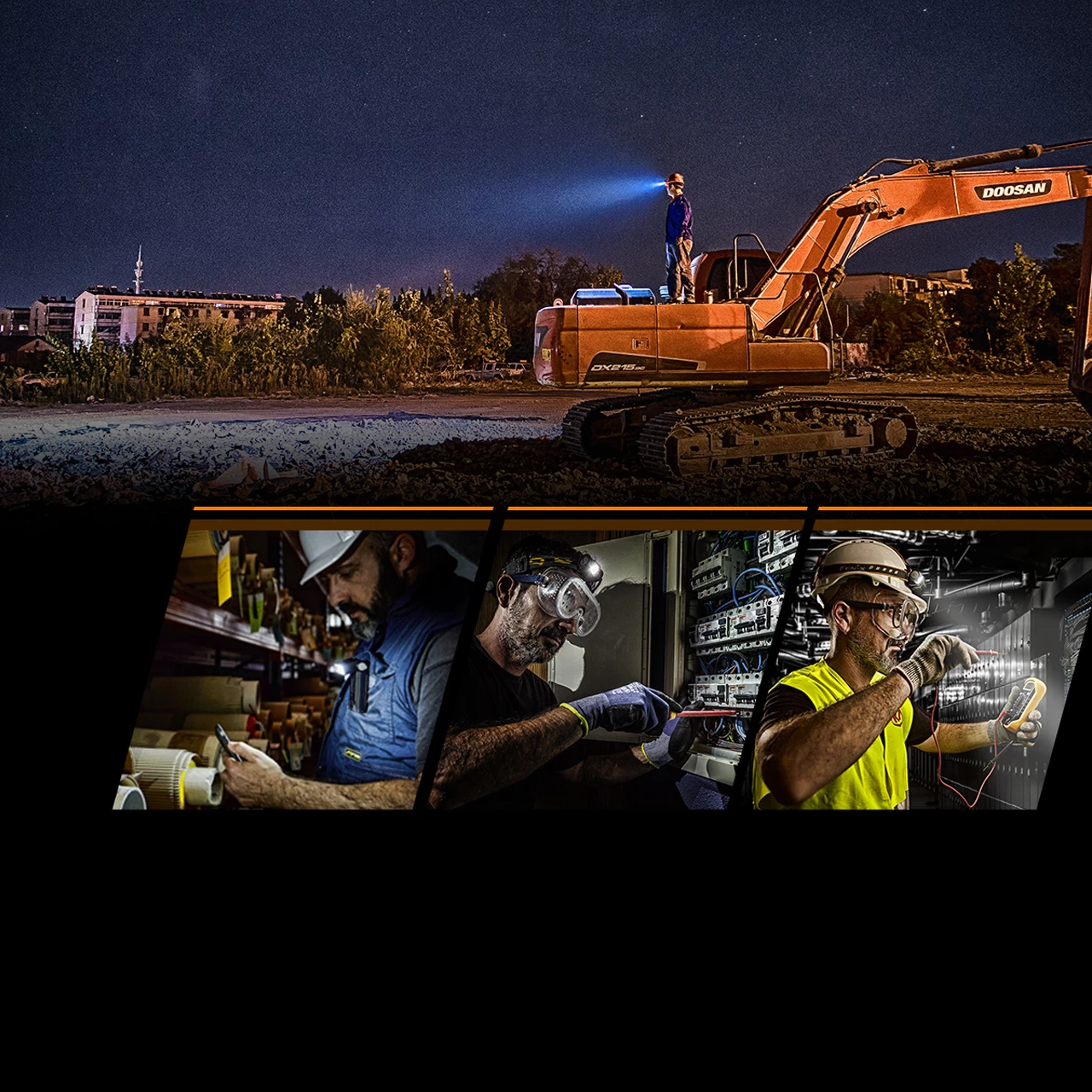 Combine main and flood beams to create your ideal beam profile. For example, 150 lumens close in flood lighting combined with 50 lumens, 59 meter main beam. Work in close yet have a little extra reach without adjusting the headlamp.