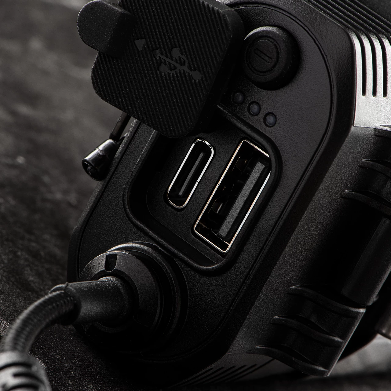 The HP30R V2 features a heavy duty battery pack with a double lock mechanism containing 2 x 5000mAh 21700 batteries that can easily be exchanged for spares to keep your torch glowing bright. The battery case itself provides indication of charging and battery level with its built in 4 x LED meter, plus a USB -OUT socket to use as a 10,000mah power bank.