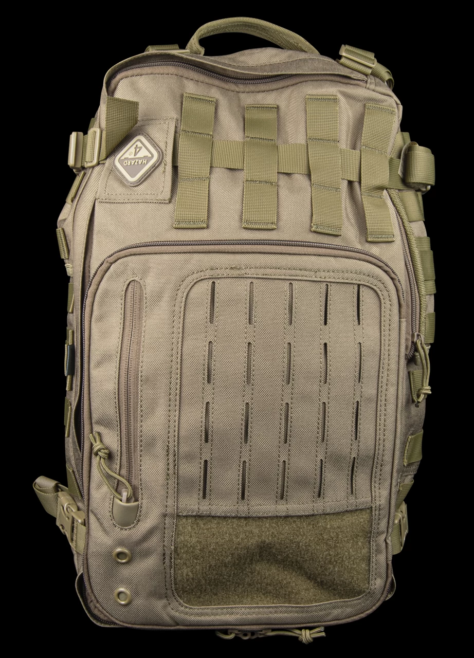 A drop-down fast access gear organizer can also hold an iPad sized tablet like a shelf and the main compartment is lined in hook&loop-like fuzz for attaching dividers, patches or Hazard 4 holsters.
