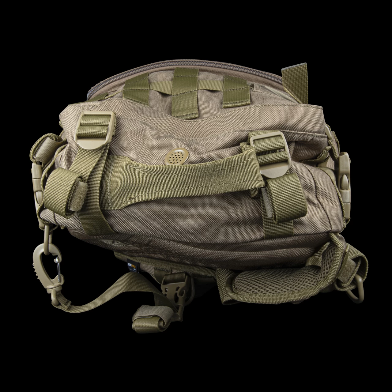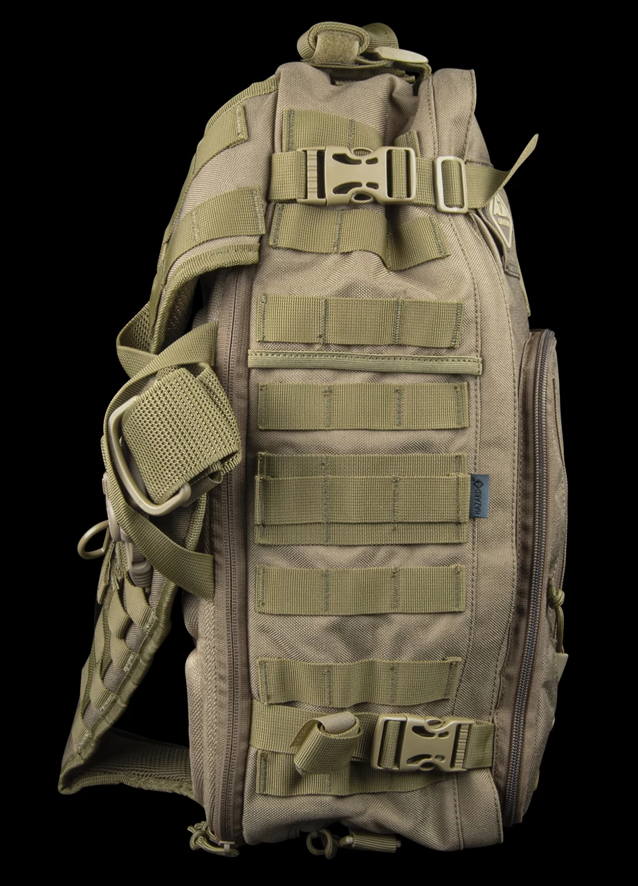 The generously padded and ventilated main shoulder strap is also ergonomically cut for hours of comfortable wear per day, and it is covered in modular (MOLLE compatible) webbing to attach pouches for phones etc. at hand’s reach. Generous side modular webbing provides lots of expansion options and the thermoformed best-in-class moulded back panel provides variable rigidity, air ventilation, and a durable surface.