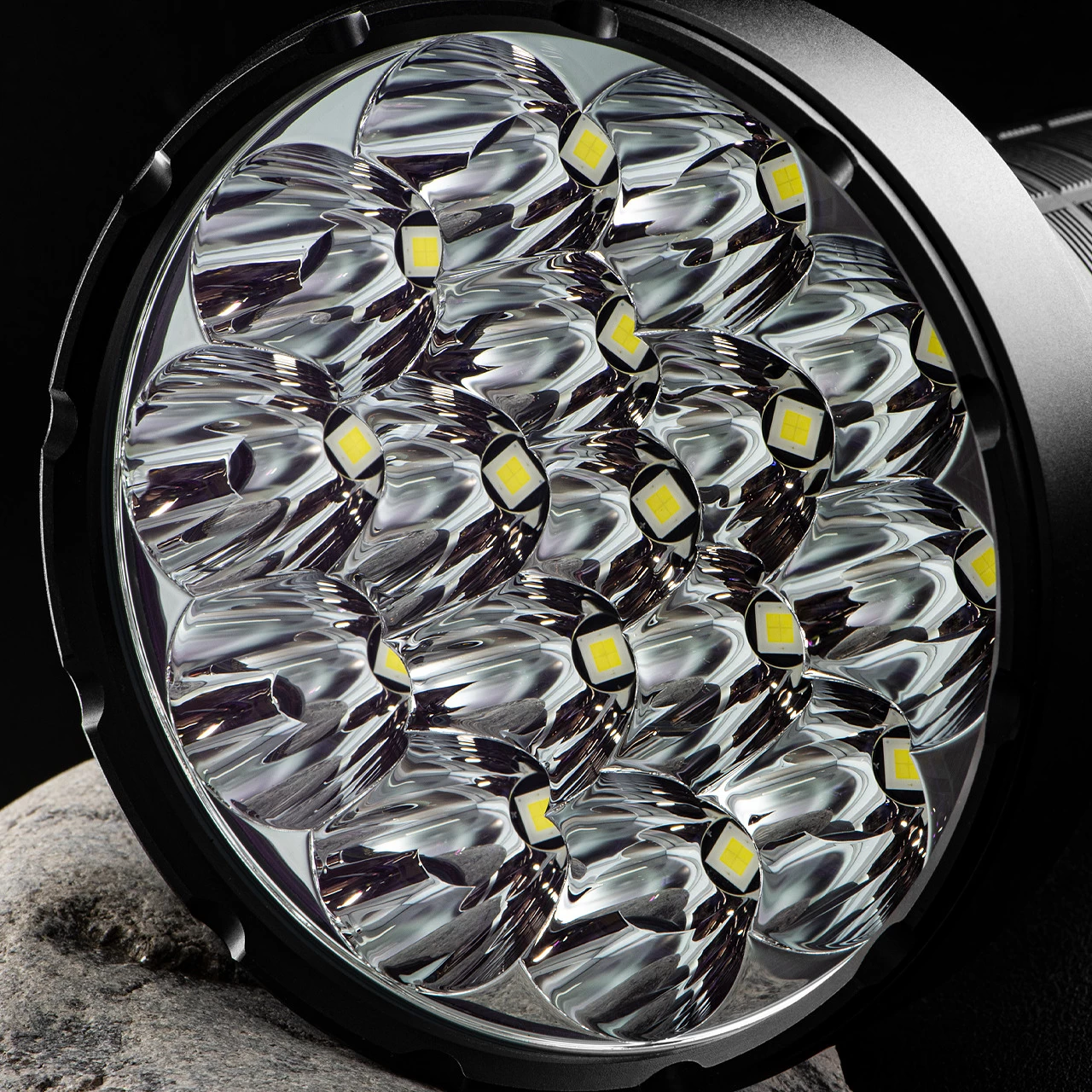 The Imalent SR16 is a can-sized powerful flashlight that uses 16 American CREE XHP50.3 HI LEDs to generate up to 55,000 lumens. Powered by its built-in Li-Ion battery pack consisting of four 21700-type cells. As a result, the beam produced by this torch can be seen from 1,715-meters away.