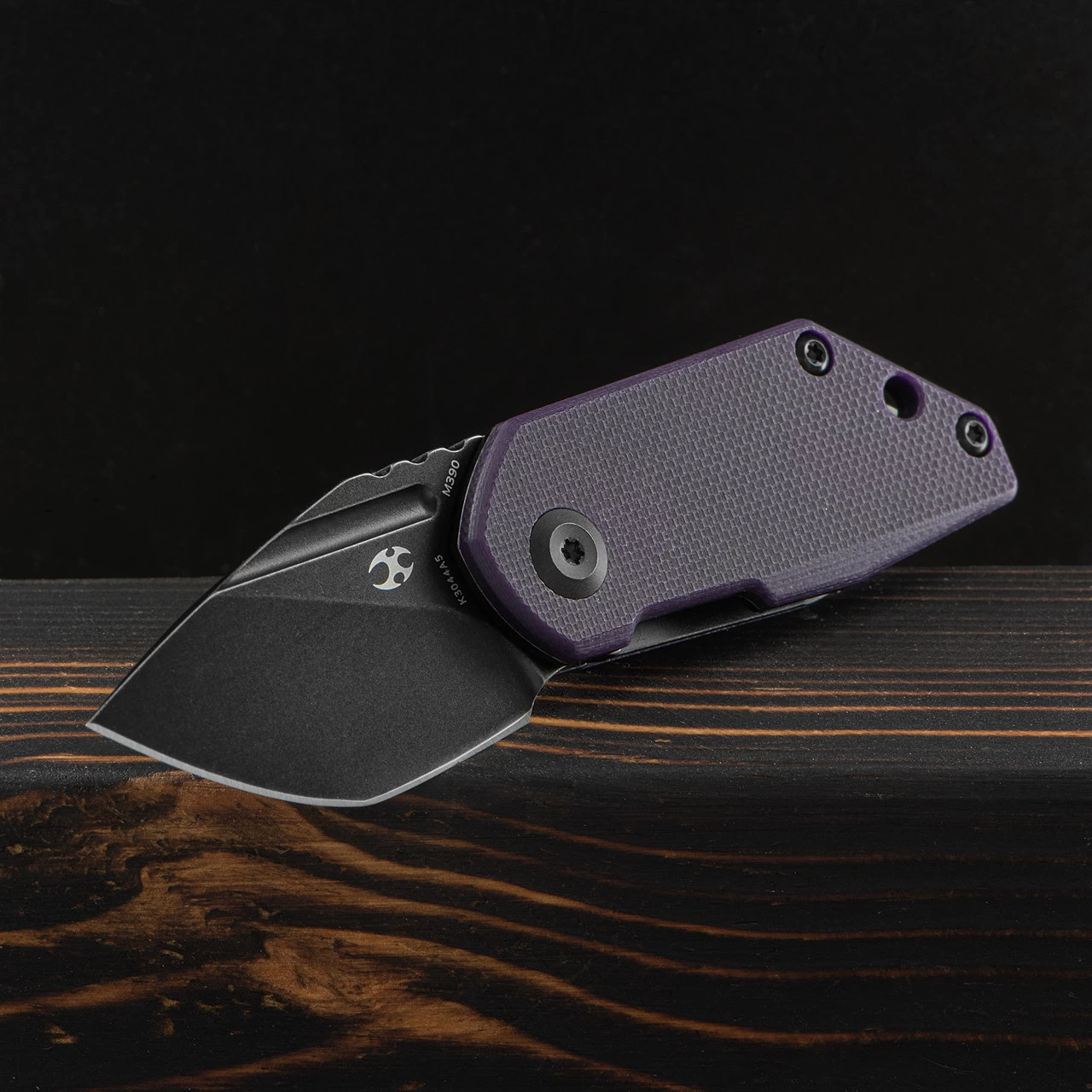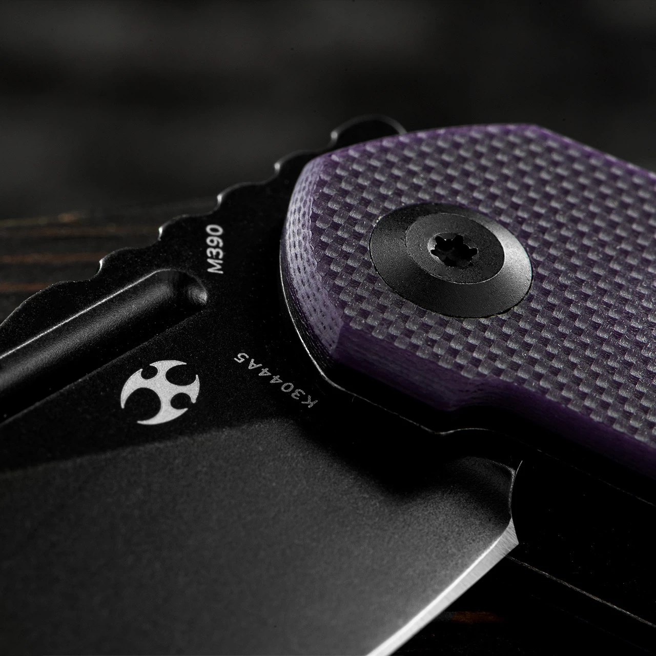 This version features a black coated blade and a tough purple G10 handle.