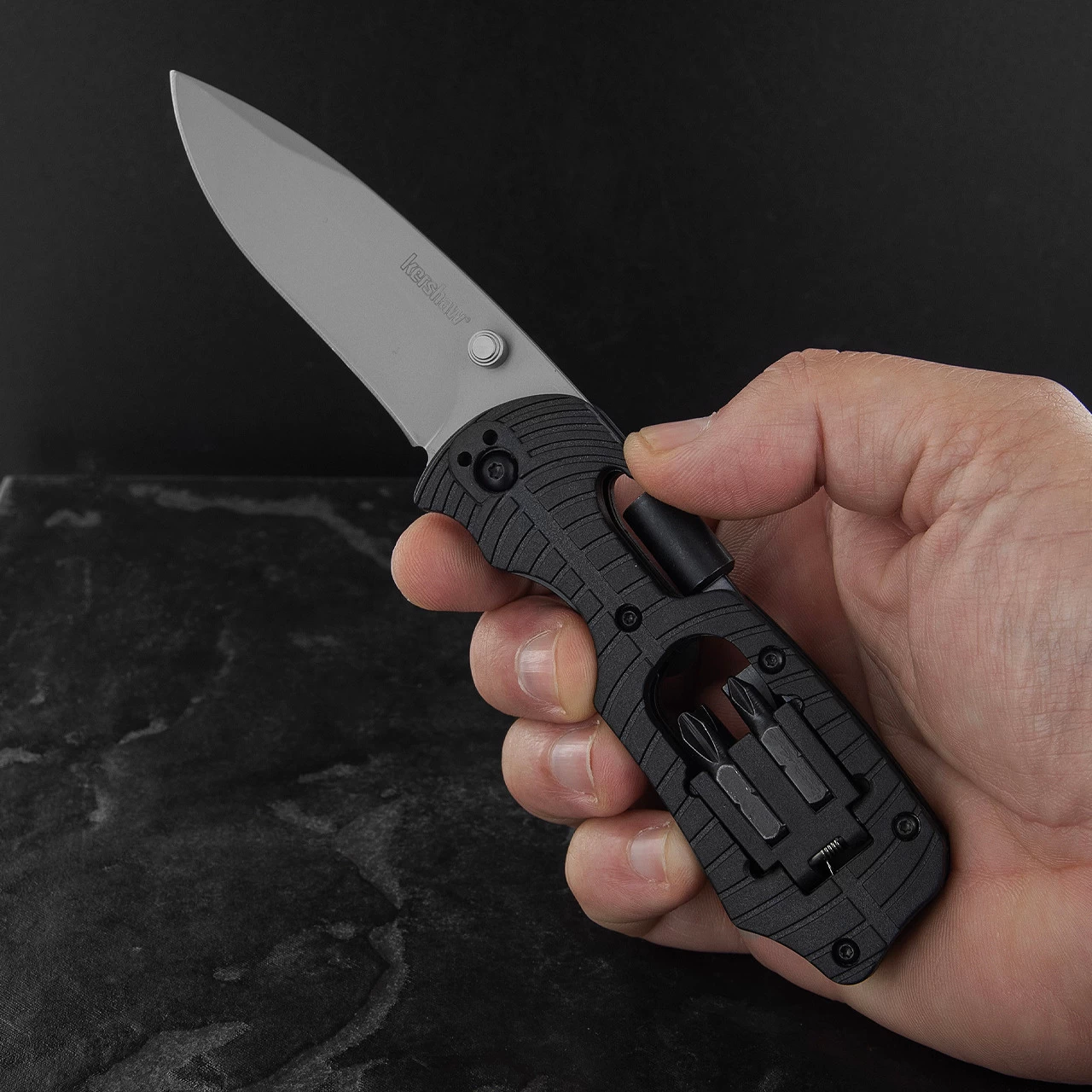Not the Kershaw Select Fire. The Select Fire was built to be a knife-focused multi-tool. There’s a big, task-ready blade plus a 4-piece bit set and bit driver.