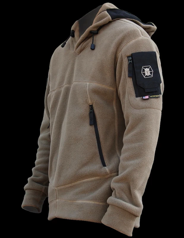 The Kitanica American Hoodie is 100% American-made and establishes a new category of “comfy cozy badass!” Constructed of breathable 200 weight fleece with hi- performance flat lock stitching, its hood has a stiffened brim with an adjustable cinching shock cord.