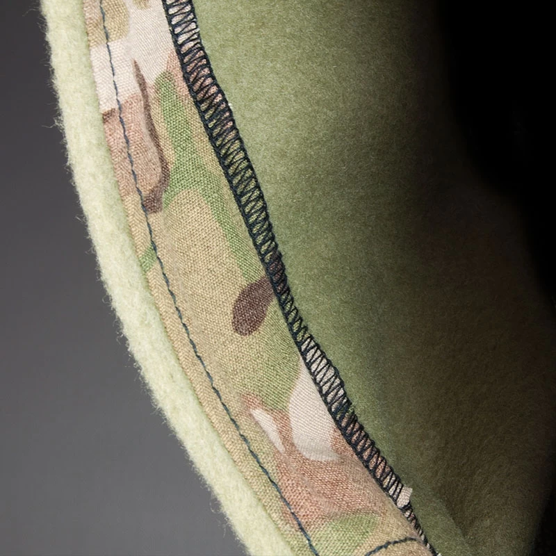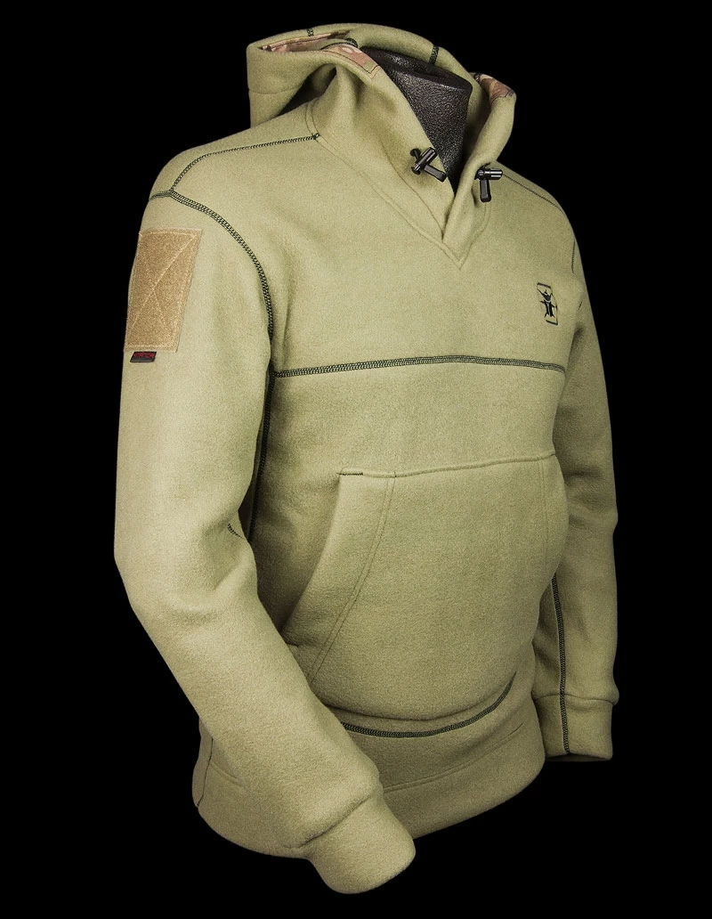 The American made Kitanica Rampart is a fire retardant hoodie constructed using a 200 gram Nomex Fleece and sewn with Nomex thread. Favoured by construction, petrochemical and refinery workers Nomex is fire retardent and will stand up to repeated washing far better than standard materials. The Multicam aramid brim around the inside of the hood helps to keep the shape of the hood and protect your face from high winds.