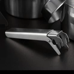 The Stainless Unibody Bamboo Cap. Fashioned from a single piece of stainless steel, the cap is strong and durable. The stainless steel bail is firmly attached, providing a handy attachment point. Beautifully finished with bamboo.