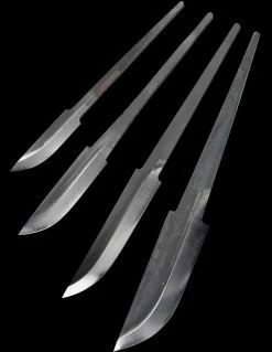 Quality Scandinavian knife blanks in a choice of blade lengths. These blanks are made from 80CrV2 progressively tempered carbon steel which means they have been heated to high levels to add strength and hardness. They have a generous tang length to affix your handle of choice.
