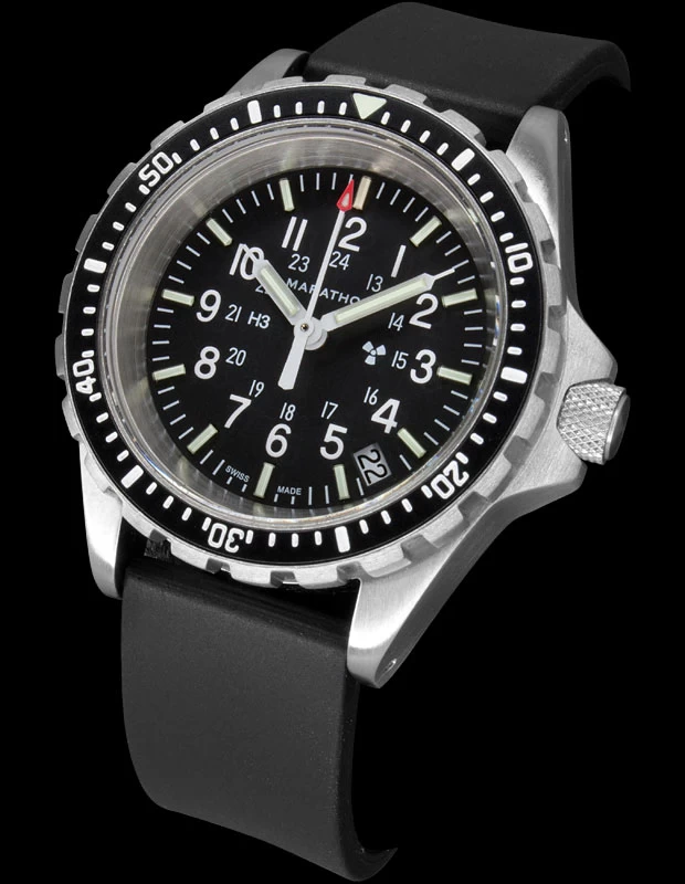 The Marathon Search & Rescue Diver’s Quartz Medium is a dive watch built to ISO 6425 standards. It is a smaller sized version of Marathon’s diver’s watches making it perfect for someone who wants a tough, reliable, and military issue dive watch that is smaller yet just as powerful as its larger brothers.