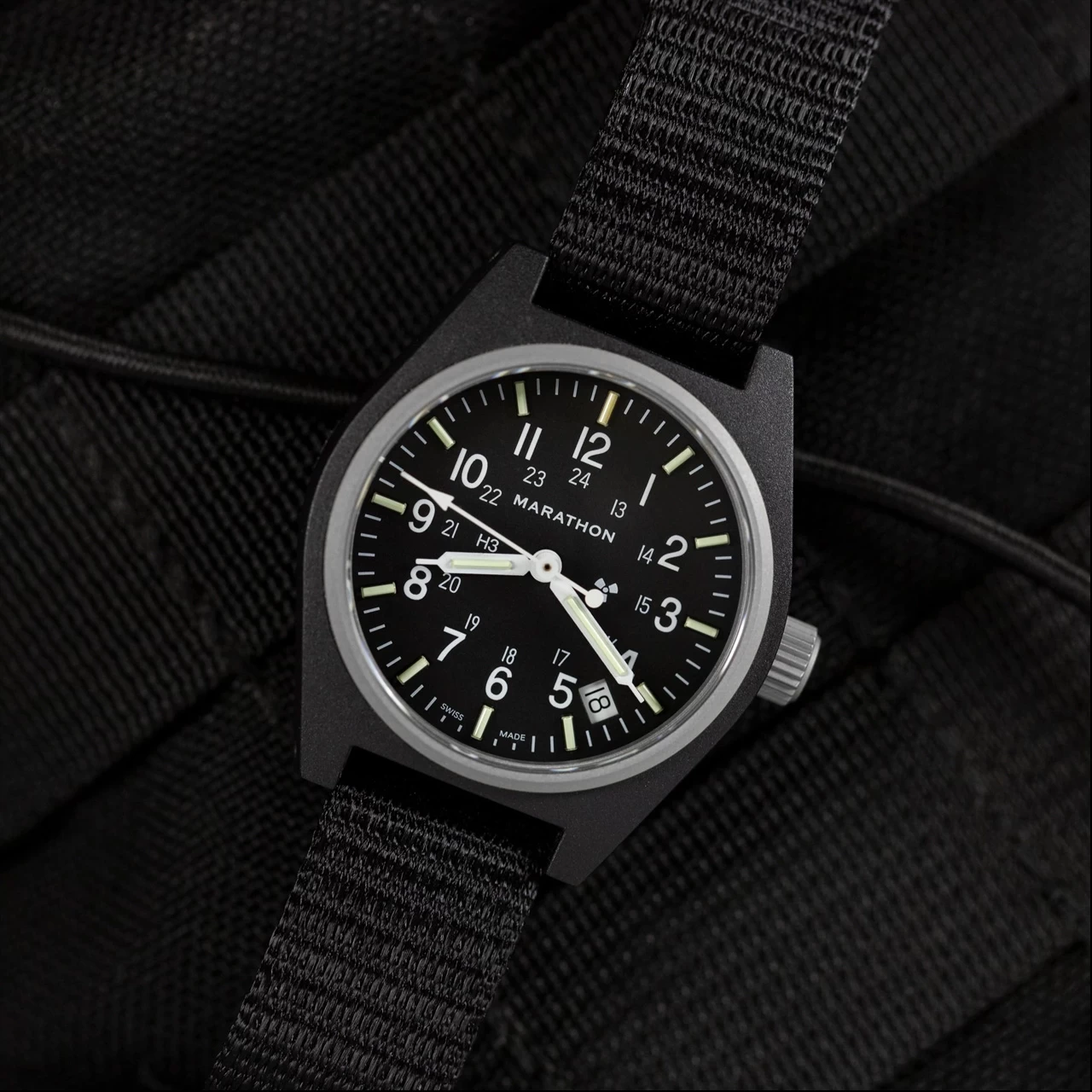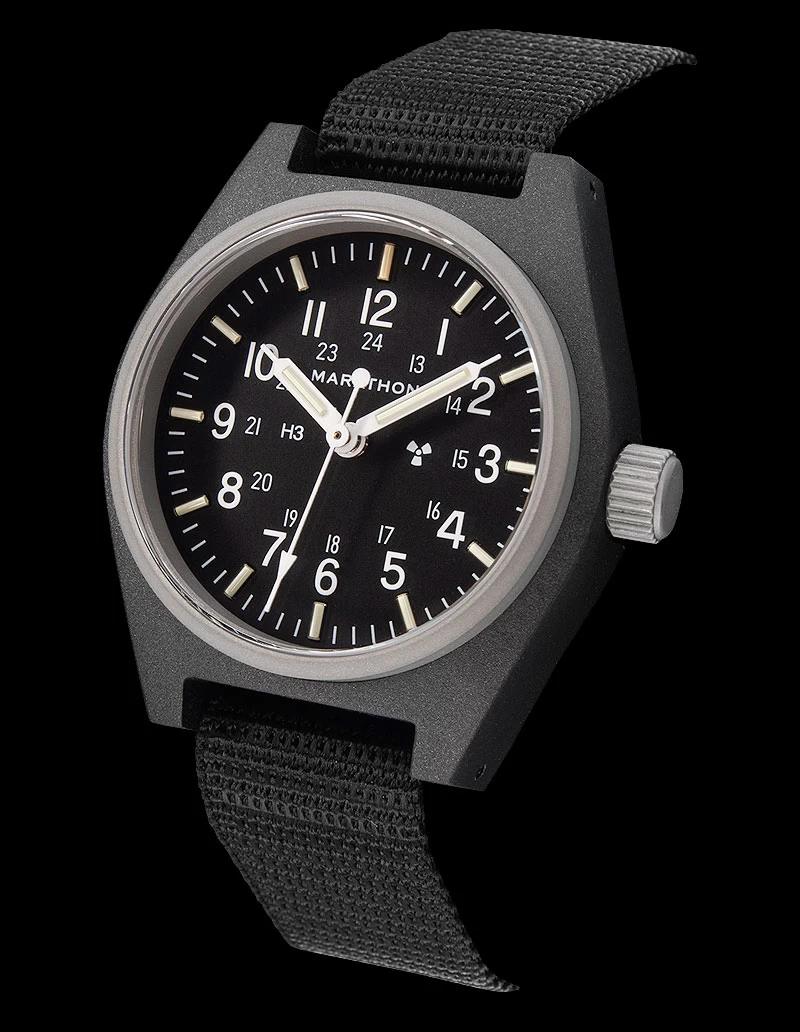 Introducing the improved Marathon General Purpose Mechanical watch featuring a dual winding movement, scratch resistant sapphire crystal, and improved water resistance. Designed to be used in the field by infantry or other military personnel and built to the strict military standards of MIL-PRF-46374G, the GPM is just as liked by a civilian as it is by a personnel uniform. The GPM is a true all purpose watch that will be your reliable companion for years.