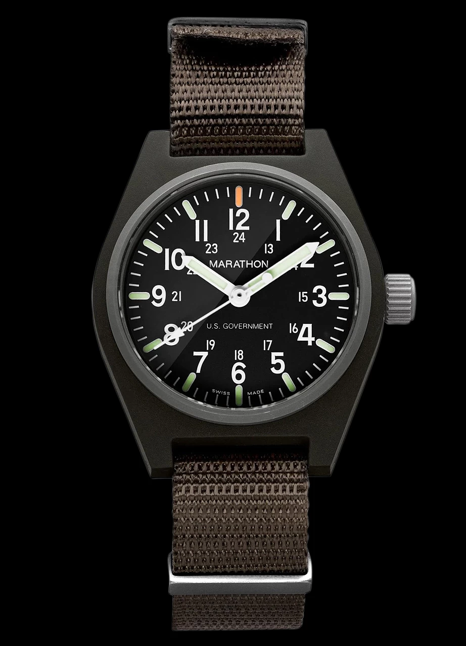 The Marathon General Purpose Quartz is a highly accurate watch built to strict military standards under MIL-PRF-46374G, Type I, Class 1. The General Purpose Quartz is built to withstand the needs of infantry, as well as suit civilians needs for a casual watch.