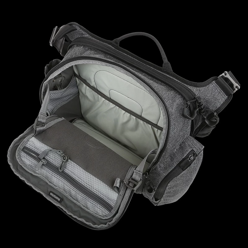 Since 2003 with the introduction of the iconic Versipack, Maxpedition have specialized in crossbody carry, and the Entity Crossbody bags are no exception. Available in two sizes, this being the larger 14L / 850 cu. in. version with the signature expandable bottle holder. The Entity has a sleek, modern exterior devoid of characteristics typically associated with the “tactical look” masks an interior optimized for organization and situational readiness.