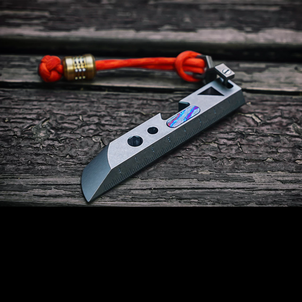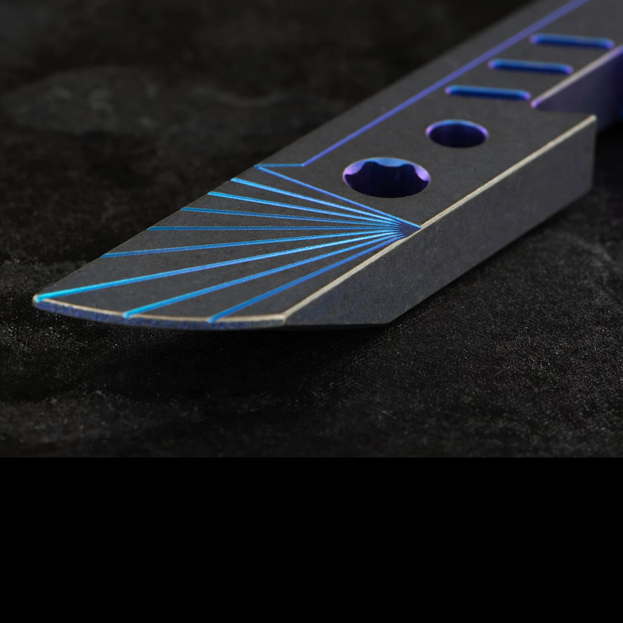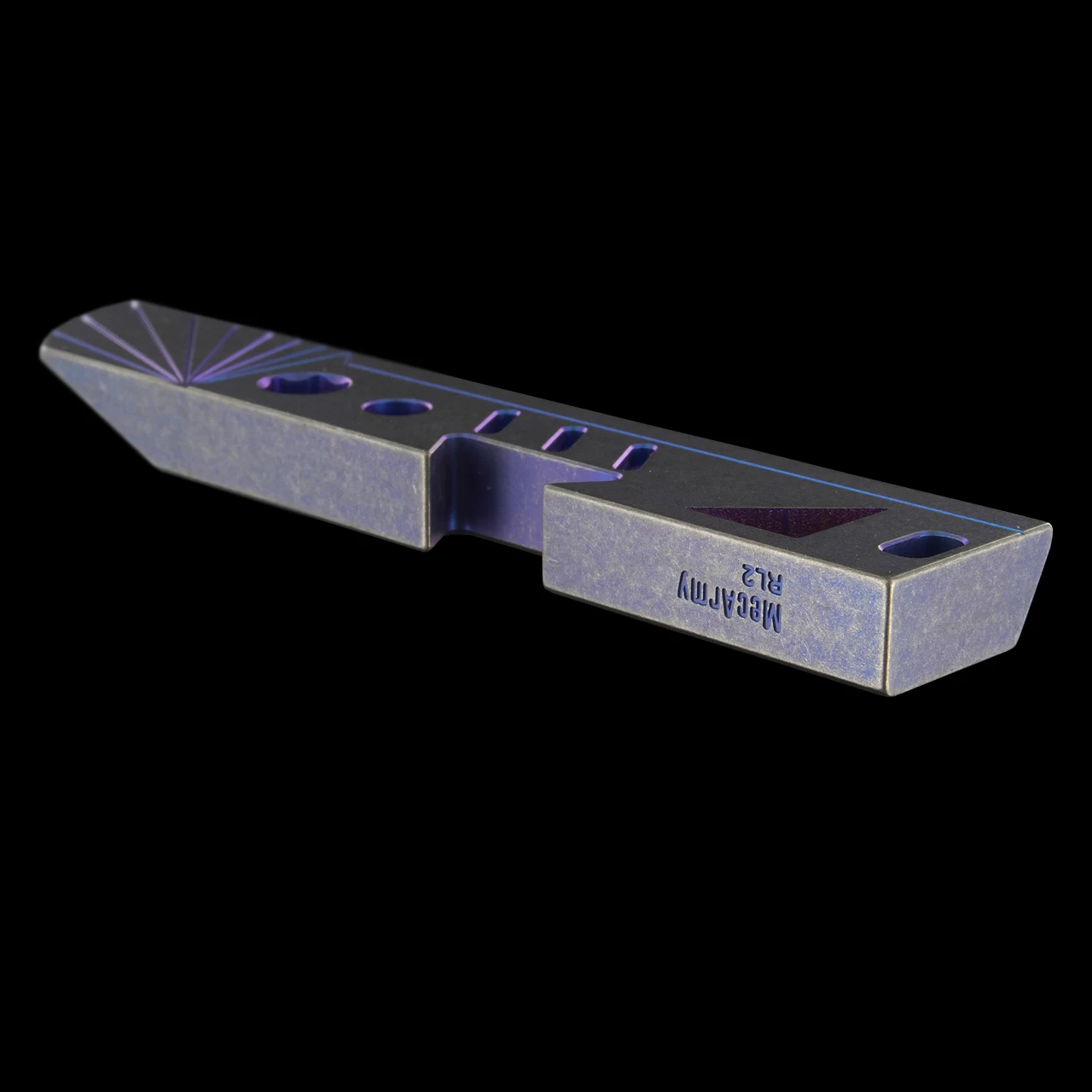 The MecArmy RL2 is a prybar, bottle opener, ruler, package opener and all-round beautiful bit of EDC (Every Day Carry) pocket treasure! Made from Titanium with blue anodised detailing and a Geek-Zr (Zirconium Damascus) inlay it is a real show stopper in the looks department and a winner, too, in the tool box.
