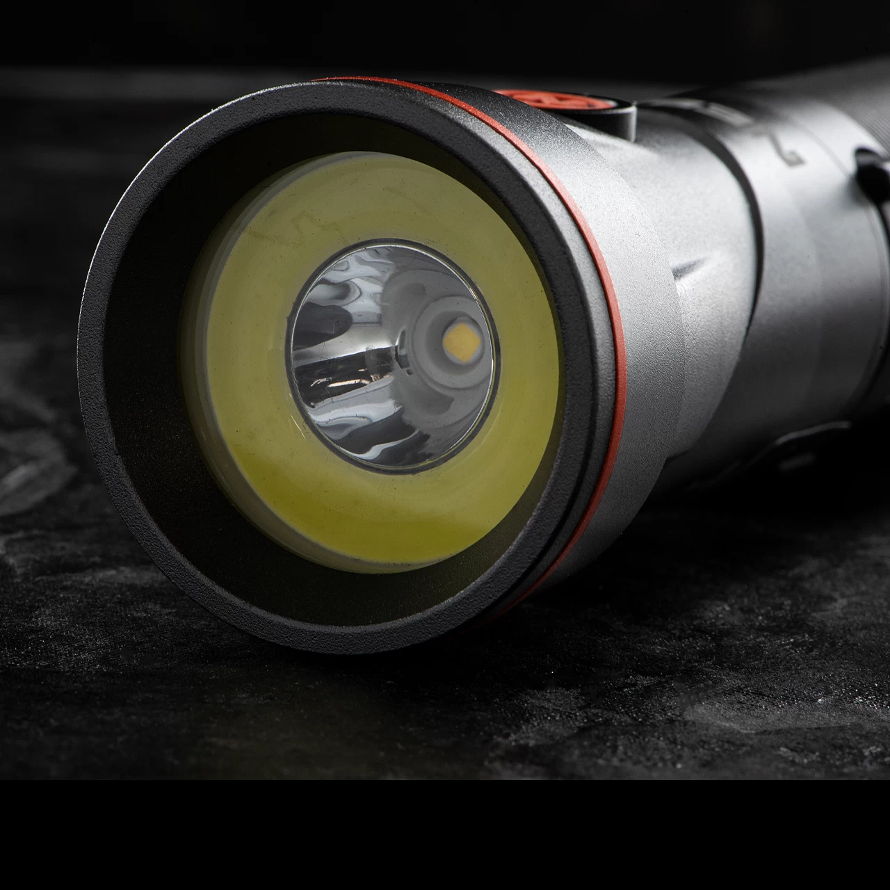 The Nebo Franklin Pivot features a high-powered 300 lumen COB LED flashlight and COB LED work light, 90° pivoting head, and a powerful magnetic base. The included rechargeable battery allows for up to 30 hours of operation in between charges.