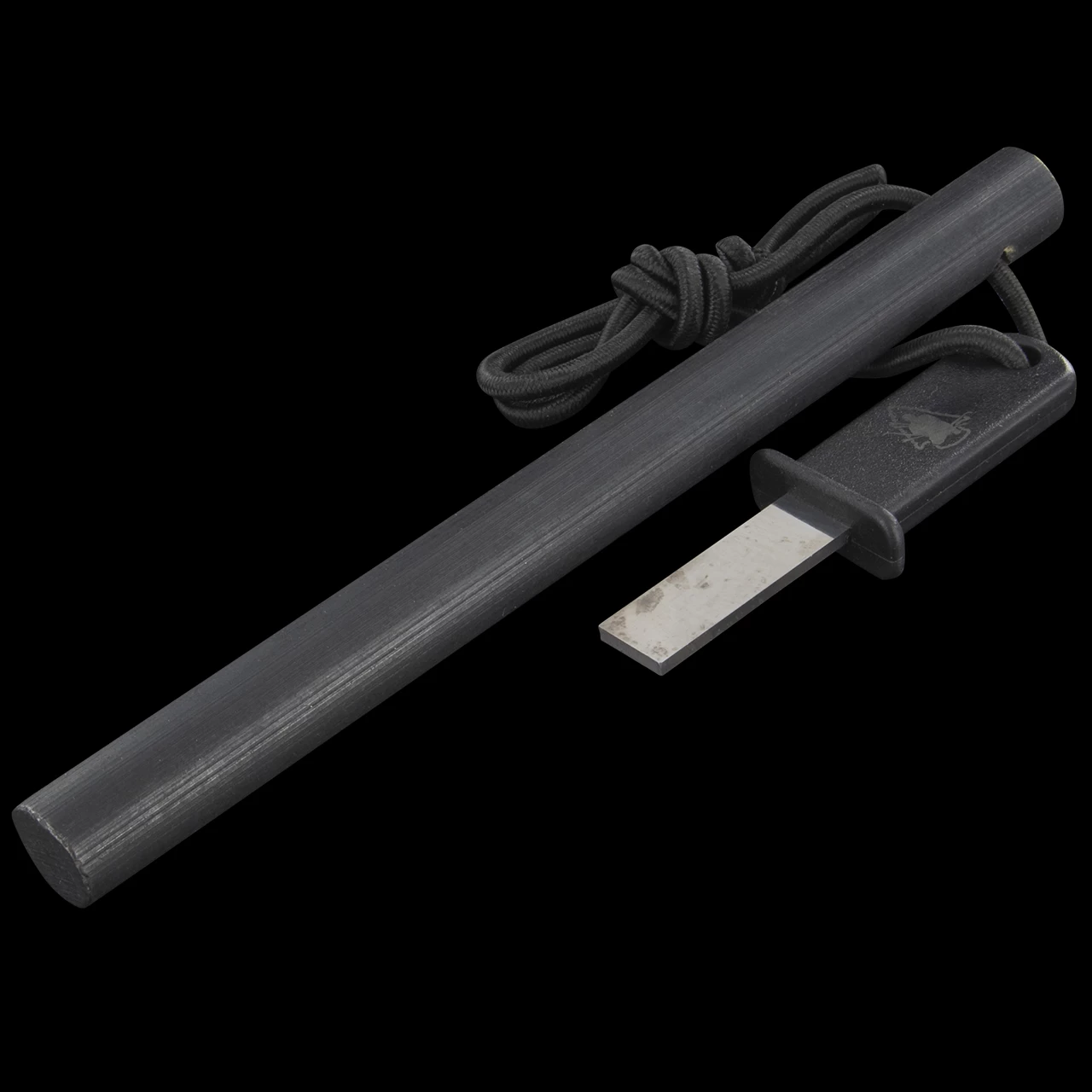 The Ferrocerium rod will provide a substantial spark everytime and is supplied with a Tungsten striker attached with an elasticated cord.