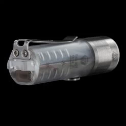 The RovyVon Aurora A28 has a clear transparent polycarbonate case that allows you to see the inner workings of this extraordinary little light. The A28 has a CREE XP-L LED for high output needs and two side light LEDs one white and one red. The white side light has a two output options and the red has a solid light, a beacon and a strobe. The maximum out put is 1000 lumens in a 7.5cm long body…amazing!