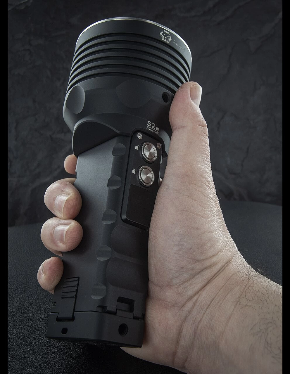 The Rovyvon S2 Elite does it all! 10,000 lumen beam, strobe, SOS, beacon, two strength red beam, red strobe, red beacon, all in a solid as anything anodised aluminium housing. It also allows easy access to either a spot or flood beam. It charges via a USB and displays current charge status in a window just below the thumb switch.Â