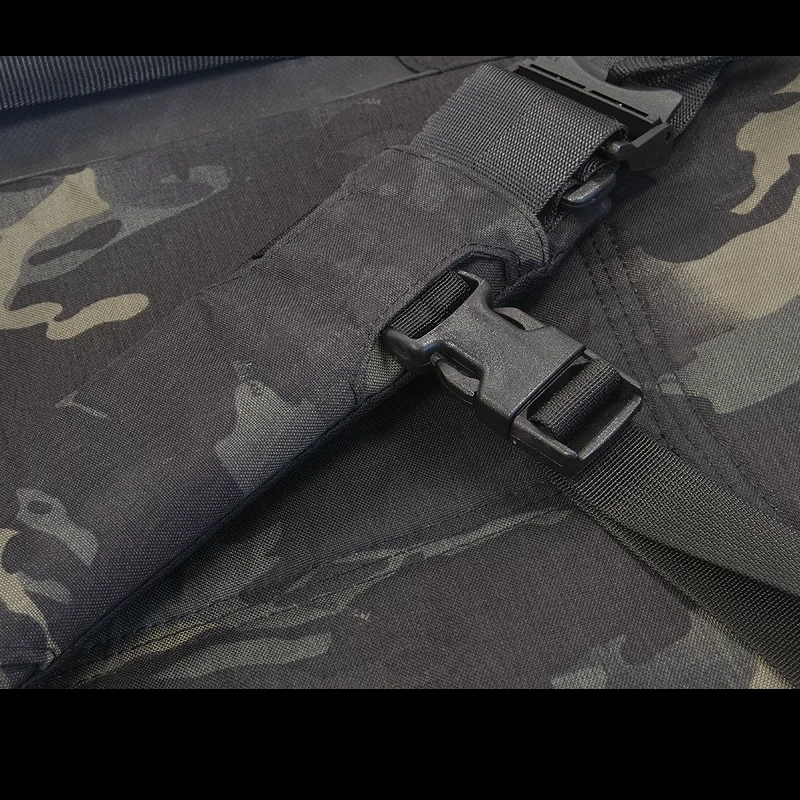 Innovative magnetic buckles self-align and mechanically lock. Easily opened and closed with a single hand, the buckles are usable even with thick gloves. End-user removable for repair or reconfiguration, the magnetic buckles can be easily swapped for Cobra buckles or other 1″ fastening hardware as desired. Dual webbing straps compress the bottom of the bag. The paneled foam bottom folds when compressed, creating a sleek profile.