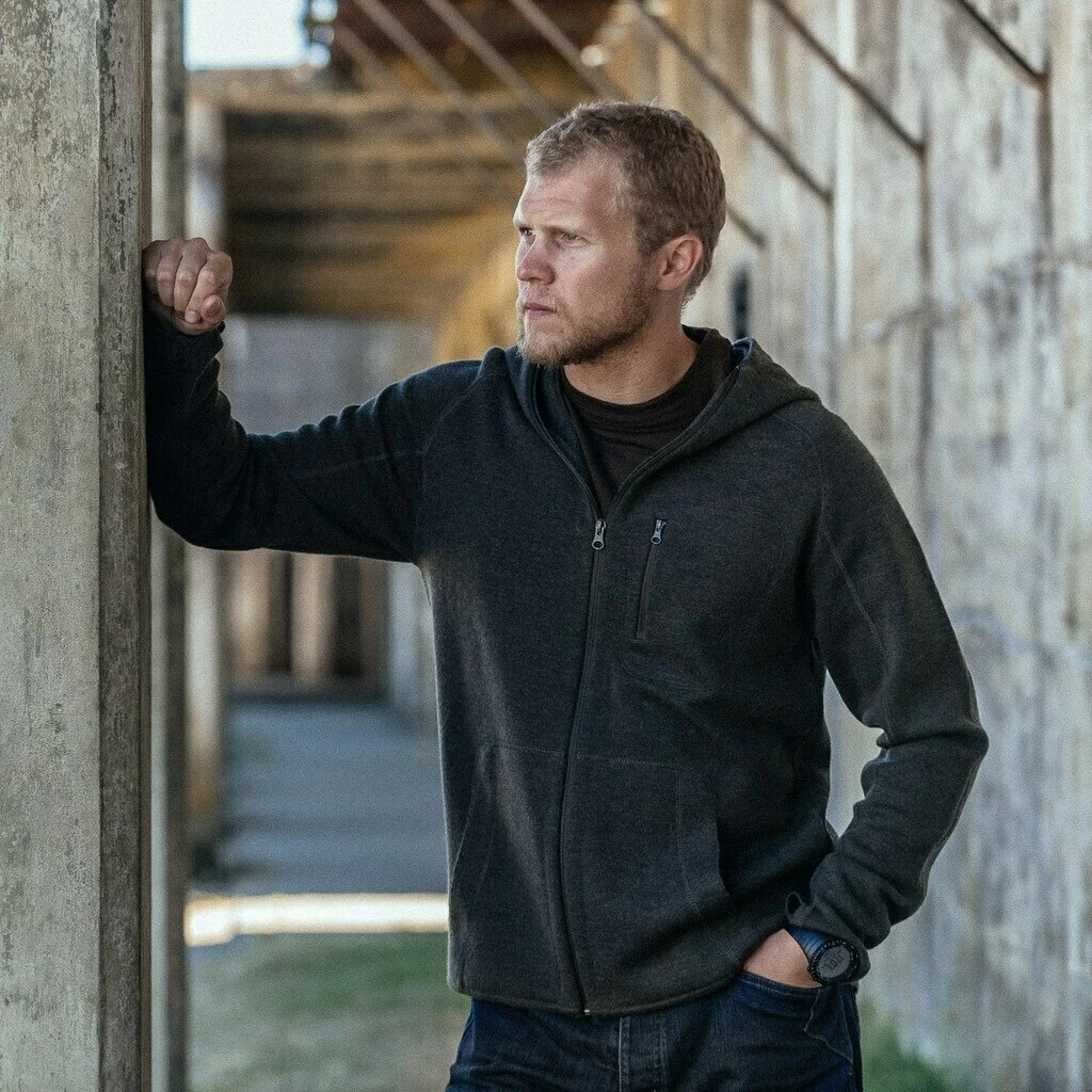 TAD Praetorian Hoodie’s 100% Merino wool looks and feels as refined as it is capable. Due to Merino’s high warmth-to-weight ratio, you can be assured of moving light and fast through any course without intrusion or limits from your clothing.
