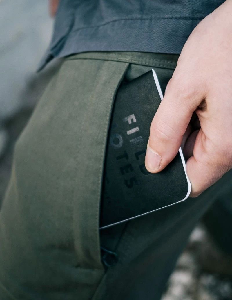 Concealed thigh zippers access flat, gusseted cargo pockets perfect for cell phones, passports, notebooks, and card sleeves. For extra security, each pocket contains a bartacked webbing rail for dummy-cording critical gear. An additional hidden pocket provides secure storage for an included repair button and other mission essentials.