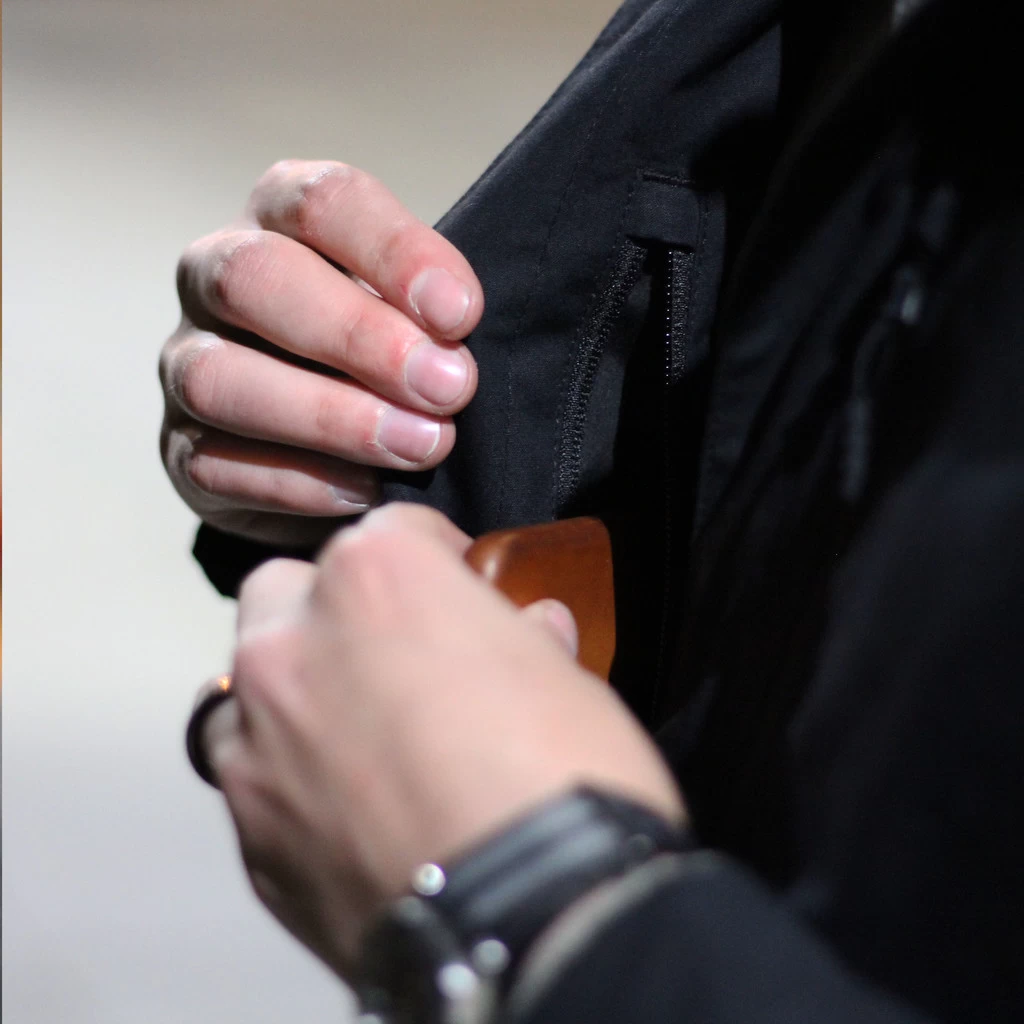 - One Exterior Chest Pocket with Weather-Resistant Zipper One Interior Chest Pocket with Weather-Resistant Zipper