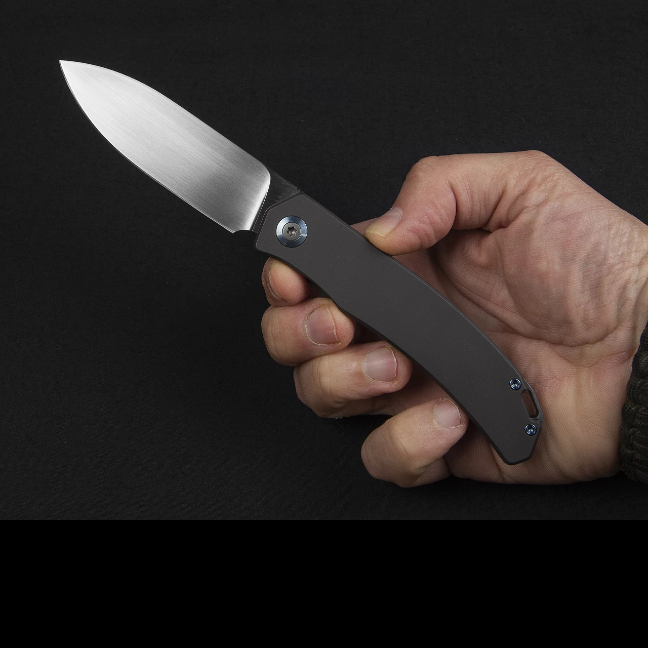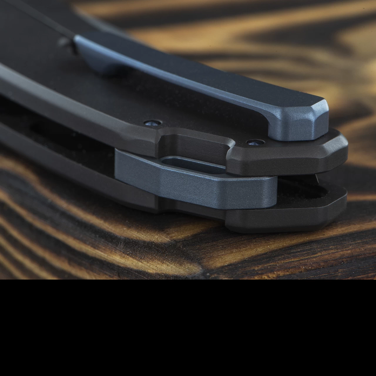 The Urban XL model features a M390 stainless steel blade with an exceptionally smooth opening thanks to the ceramic ball bearing pivot. It locks securely into place with a frame lock mechanism cut into the handle. The handle is Grade 5 Titanium with a blue anodised Titanium pocket clip attached. The hardware is polished blue anodised Titanium.Â