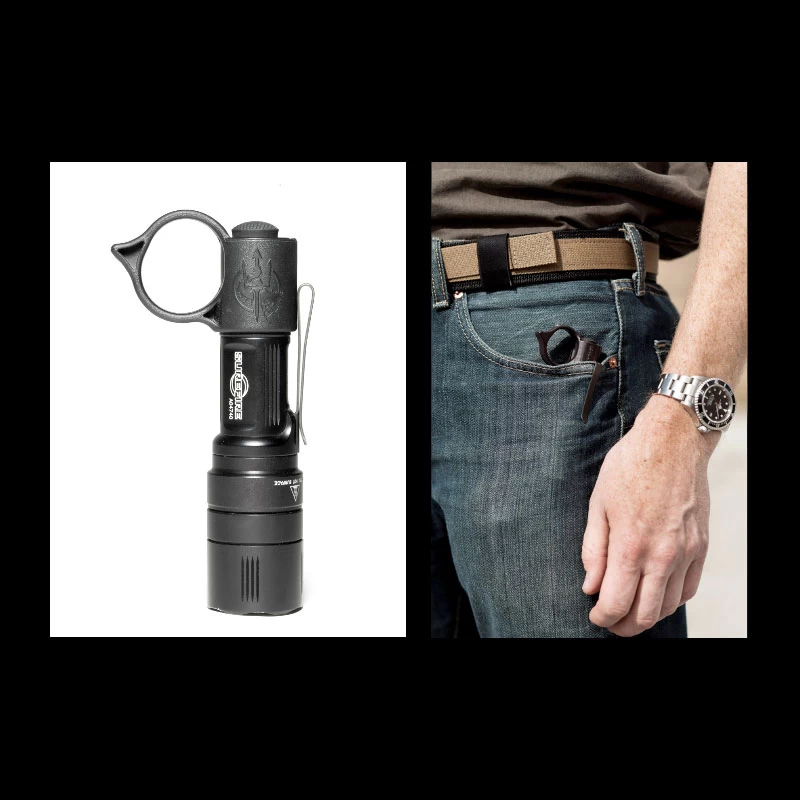 - Reliably deploy and index flashlight from both pockets and pouches, using the SwitchBack’s rigid retention ring.