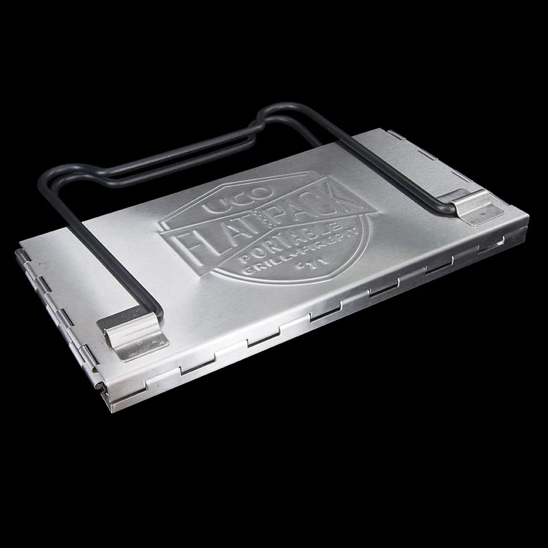 The Uco Mini Flatpack portable grill & firepit serves 2-3 people and packs compact for easy transportation to the beach, campsite or barbeque. It is Stainless steel construction for durability and easy maintenance. It has a quick 30 second set-up and you are ready to go.